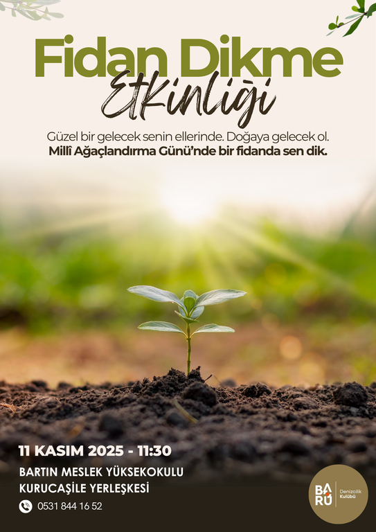 Bartın Üniversitesi Denizcilik Kulübü olarak, doğaya ve çevreye olan sorumluluğumuzun bilinciyle Millî Ağaçlandırma Günü kapsamında bir fidan dikme etkinliği düzenliyoruz.